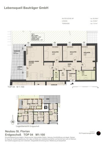 Linzer Straße 11a, Bachgasse / TOP 4, liegt im ruhigen Innenhof, im Erdgeschoß mit südwestlich ausgerichteter Loggia und angrenzender Grün- bzw. Spielfläche.