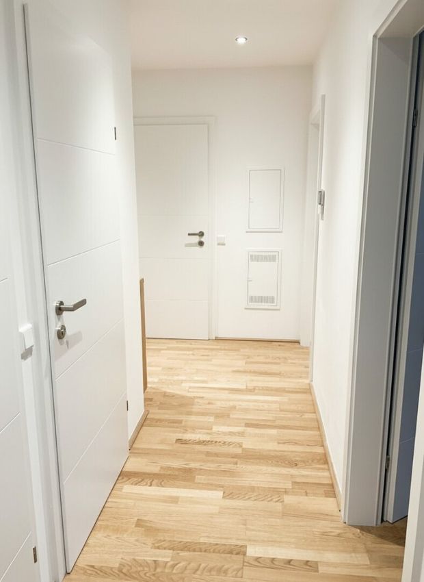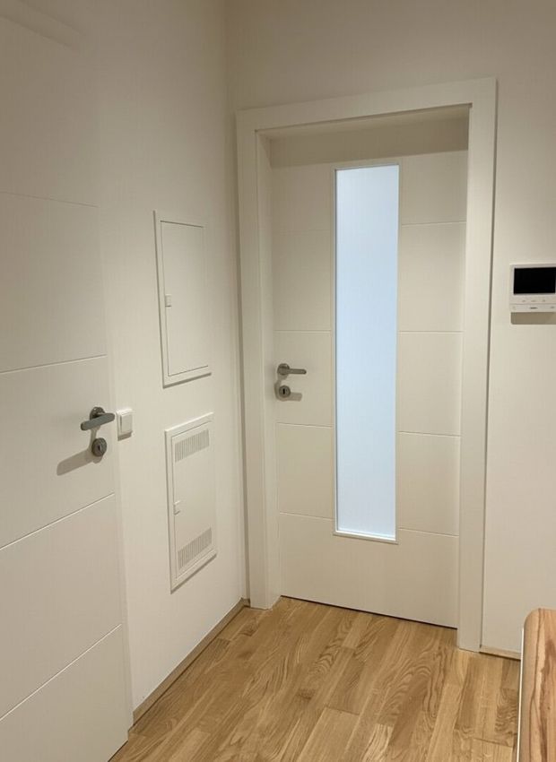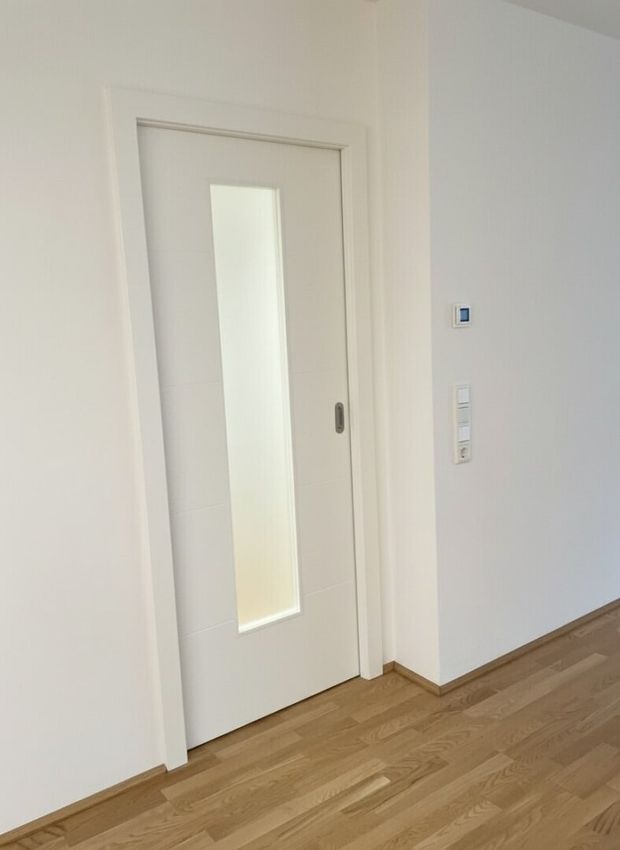 - hochwertige, massive Innentüren, teilweise mit Glaseinsätzen und einer Schiebetüre