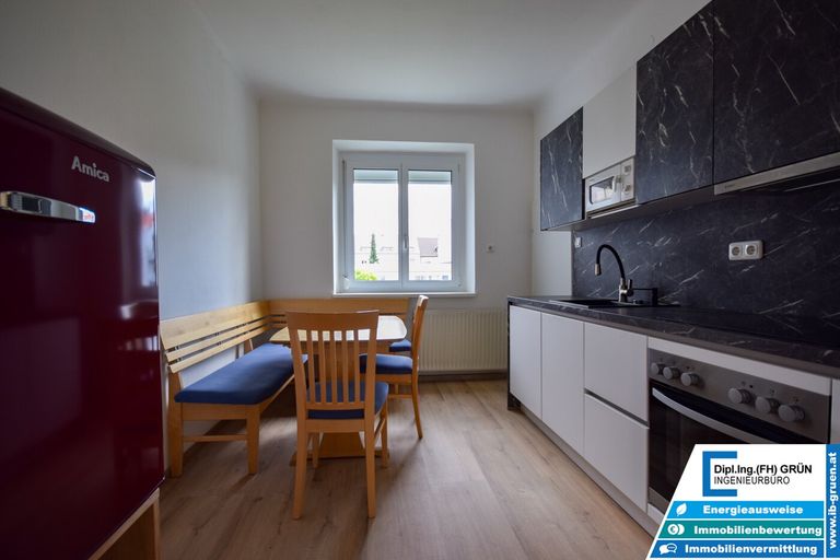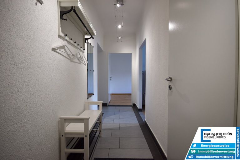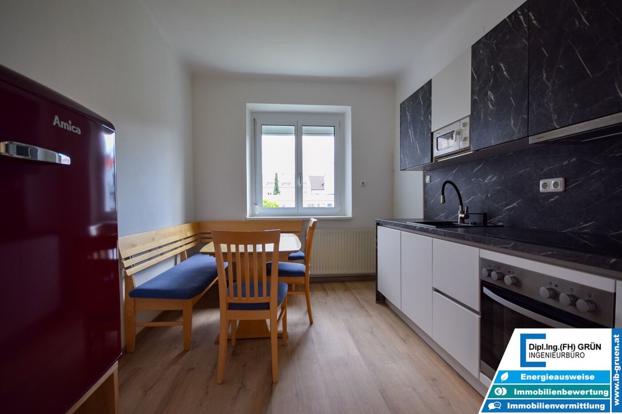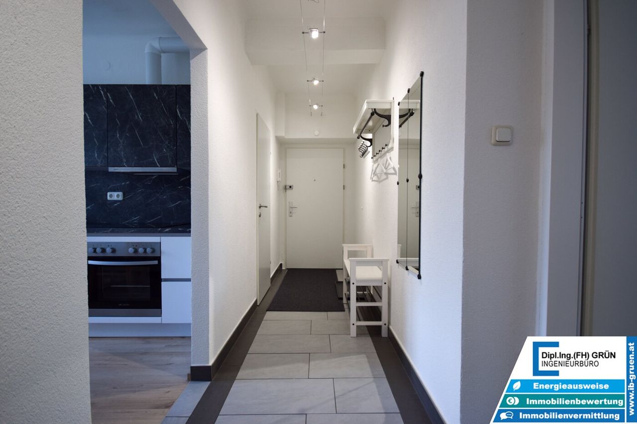 Zum Verkauf steht eine komplett kernsanierte Wohnung mit 57 m² im 1. Stock eines kleinen Wohnhauses mit nur 8 Parteien entlang der Wiener Straße.