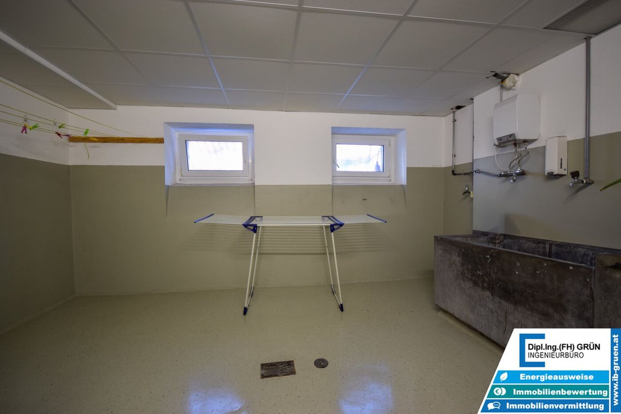 Zur Wohnung gehört ein sehr großer privater Kellerraum mit ca. 12 m². Zusätzlich steht eine gemeinschaftliche Waschküche (Waschen & Trocknen) zur Verfügung.