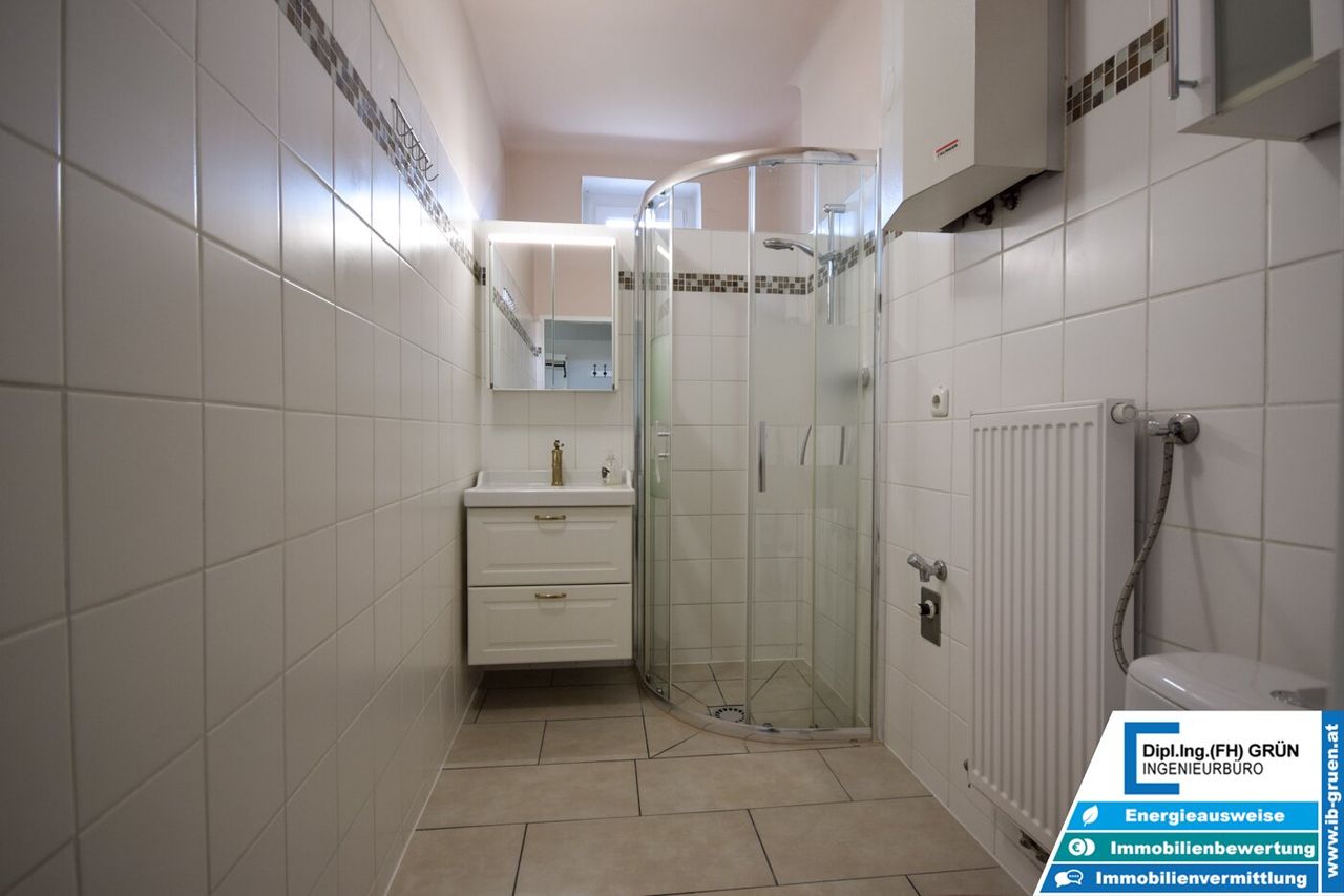 Helle, gut geschnittene Einheit mit separater Küche sowie Badezimmer. Trotz Lage an der Wiener Straße ist die Wohnung dank der neuen Fenster sehr ruhig; Rollläden an allen Fenstern sorgen zusätzlich für Lärmschutz und Verdunkelung.