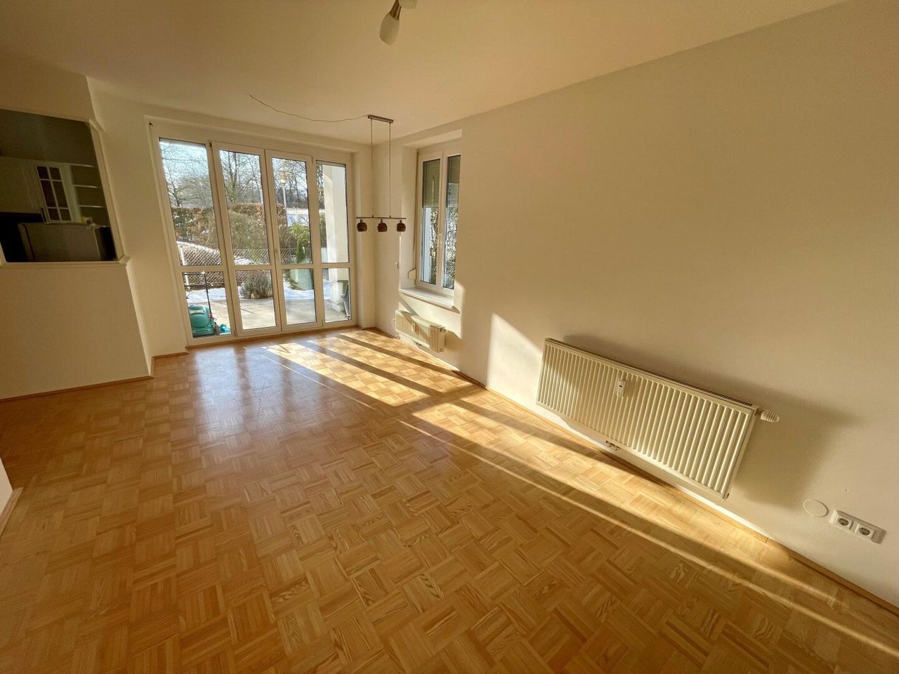 Die Wohnung befindet sich im Erdgeschoss eines Mehrfamilienhauses, ruhig in einer Sackgasse gelegen, wobei sich der zugeordnete PKW-Stellplatz im Freien vor dem Eingangsbereich befindet. Vom Wohnzimmer aus gelangen Sie auf die ca. 6 m² große Terrasse/Loggia und den südwestseitig ausgerichteten Garten mit ca. 47 m². Ein Kellerabteil ist natürlich vorhanden. Beheizung und Warmwasseraufbereitung erfolgen mittels Fernwärme. Das Objekt kann, inklusive Küche, kurzfristig übernommen und bezogen werden. Als Alterssitz oder Startwohnung die optimale Lösung.
