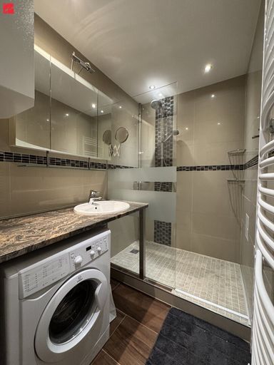 Das Badezimmer wurde liebevoll saniert und verfügt über eine moderne Dusche. Der Waschmaschinenanschluss befindet sich ebenfalls hier. Besonders angenehm: der beheizte Handtuchhalter, der im Winter für vorgewärmte Handtücher sorgt und nasse Kleidung im Handumdrehen trocknet.