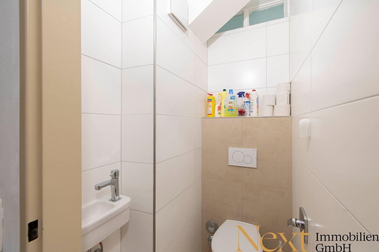 Das kleine aber feine Badezimmer ist ebenso mit einem Fenster ausgestattet und sorgt somit für ausreichend Tageslicht. Hier befindet sich zusätzlich zum Waschbecken eine Dusche und ein Handtuchheizkörper. Ein Waschmaschinenanschluss ist im Badezimmer nicht vorhanden, jedoch kann eine Waschmaschine im Abstellraum ihren Platz finden.