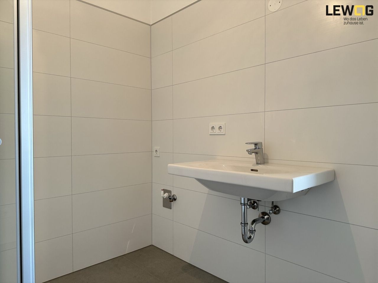 Bad und WC sind getrennt. Das WC verfügt über ein eigenes Handwaschbecken mit Kalt- und Warmwasseranschluss. Das Badezimmer ist mit einer Dusche (90x90 cm), einem Waschtisch sowie einem Waschmaschinenanschluss ausgestattet. Im angrenzenden Abstellraum befindet sich die zentrale Wohnraumlüftung.