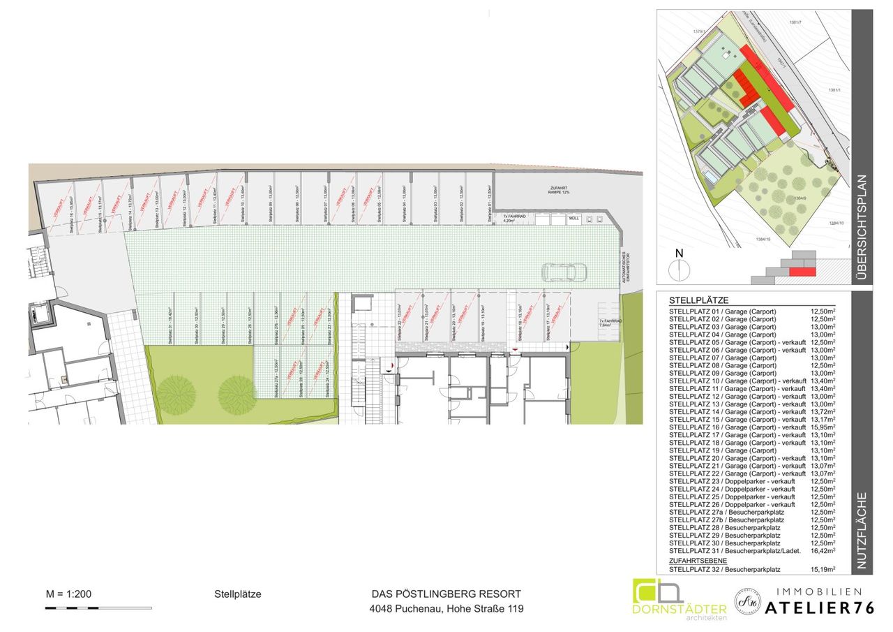 - Je Wohnung sind 2 Garagenplätze (Garagen/Carports) vorgesehen