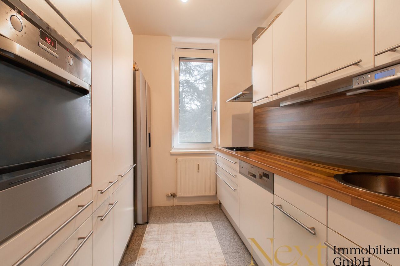 Der großzügige Wohn- und Essbereich bildet das Herzstück der Wohnung. Die abgetrennte Küche befindet sich direkt nebenan und bietet ausreichend Platz für kulinarische Entfaltung und lässt sich ideal in den Alltag integrieren. Große Fensterflächen sorgen für eine freundliche Atmosphäre und unterstreichen den angenehmen Wohnkomfort.