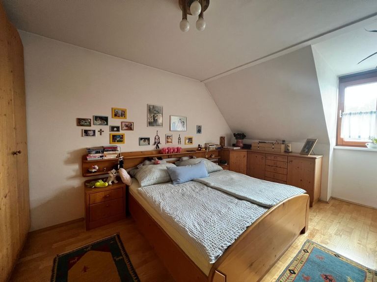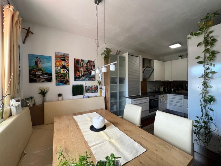 Diese helle attraktive 5-Zimmer-Maisonette über zwei Geschoße bietet auf großzügigen 110 m² Wohnfläche höchsten Wohnkomfort für die ganze Familie. Sie erwerben hier eine Immobilie, die durch ihre durchdachte Raumaufteilung überzeugt, wobei der zugehörige Außenbereich uneinsichtig liegt. Genießen Sie den herrlichen Bergblick vom Südwestbalkon und der Loggia – der perfekte Ort, um den Feierabend entspannt ausklingen zu lassen oder sonnige Stunden im Freien zu verbringen (extra Wasseranschluss). Die Wohnung ist mit einer modernen Einbauküche ausgestattet und bietet neben einem großzügigen Wohnbereich einen gemütlichen Essplatz. Die Gas-Zentralheizung sorgt für wohlige Wärme in der kalten Jahreszeit. Für die Warmwasseraufbereitung sorgt ein Nachtstromboiler, welcher auch bei Bedarf auf Tag-Strom umgestellt werden kann.