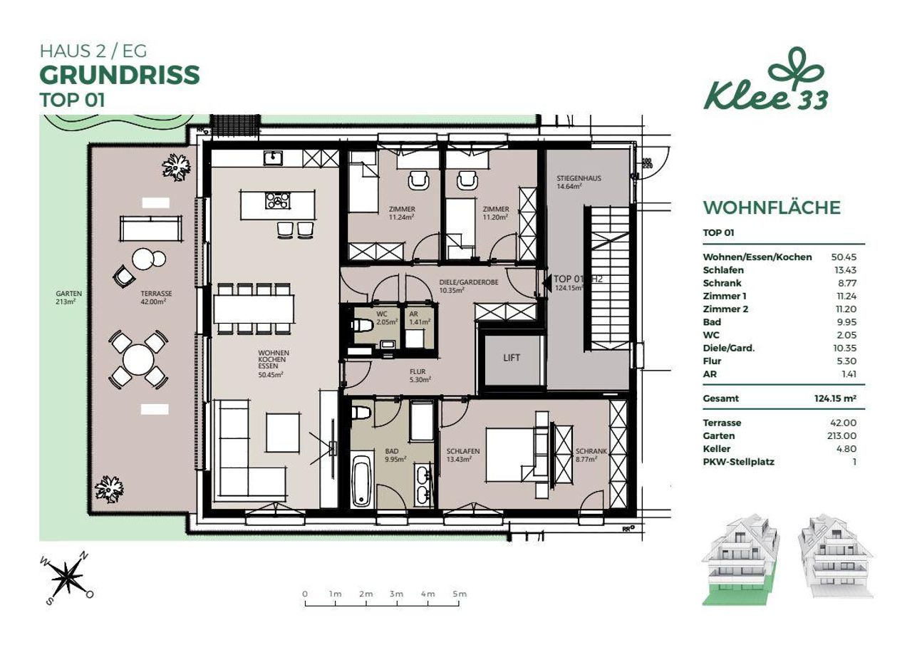EG Top 1 ca. 124,15 m² 4 Raumwohnung mit Terrasse & Eigengarten
