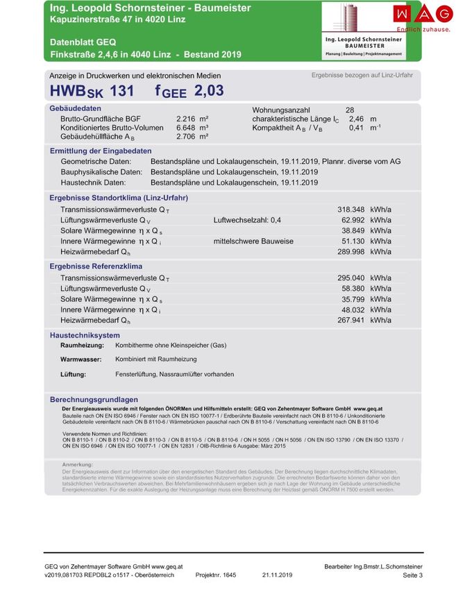 Energiekennzahl : HWB 131 fGee 2,03