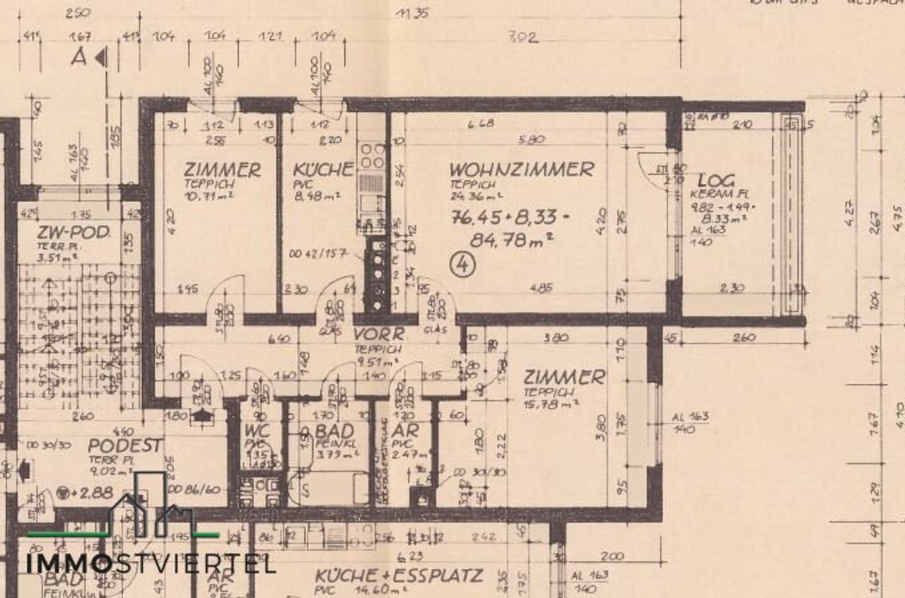 * Wohnfläche inkl. Loggia gesamt 84,78 m² im ersten Stock ohne Lift
