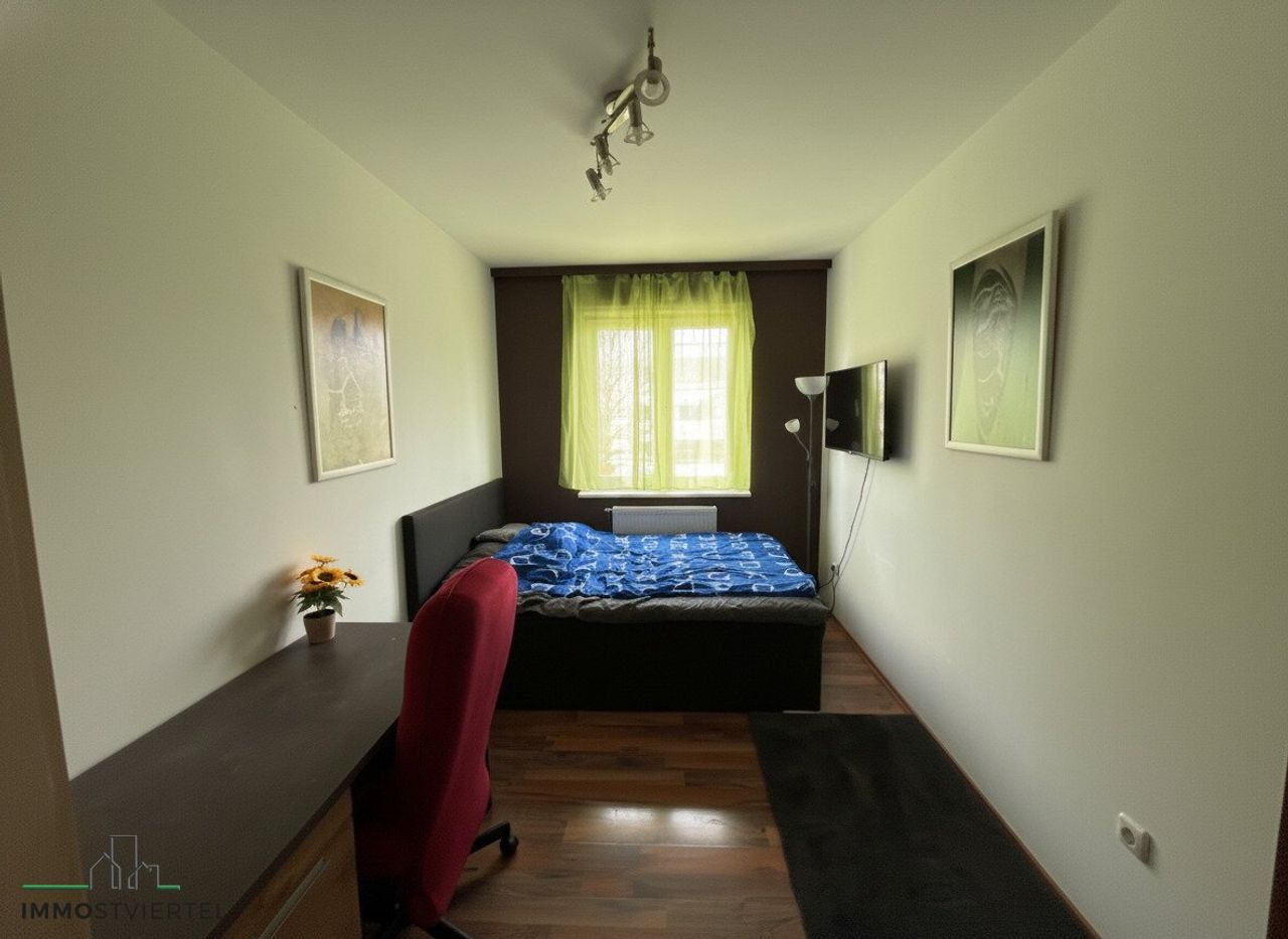 * Raumaufteilung: Vorraum, Abstellraum, Bad mit Wanne, WC, Küche, Kinderzimmer, Wohnzimmer, Schlafzimmer