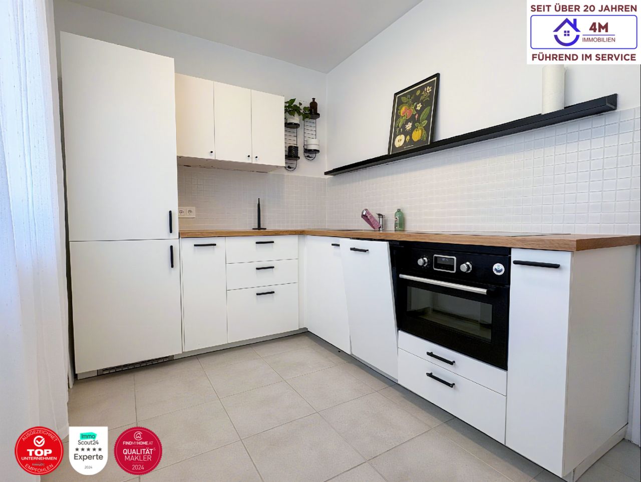 Zum Verkauf gelangt eine helle und modern renovierte 2-Zimmer-Wohnung in ruhiger Grünlage direkt beim Schlosspark in Wolkersdorf / Obersdorf.