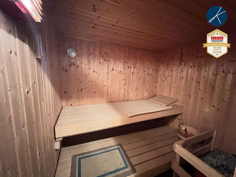 Die Wohnung ist mit einer Einbauküche ausgestattet und verfügt über eine Sauna, eine Photovoltaikanlage, eine Klimaanlage, eine Entkalkungsanlage sowie zwei getrennte WCs, was den Alltag besonders praktisch gestaltet.