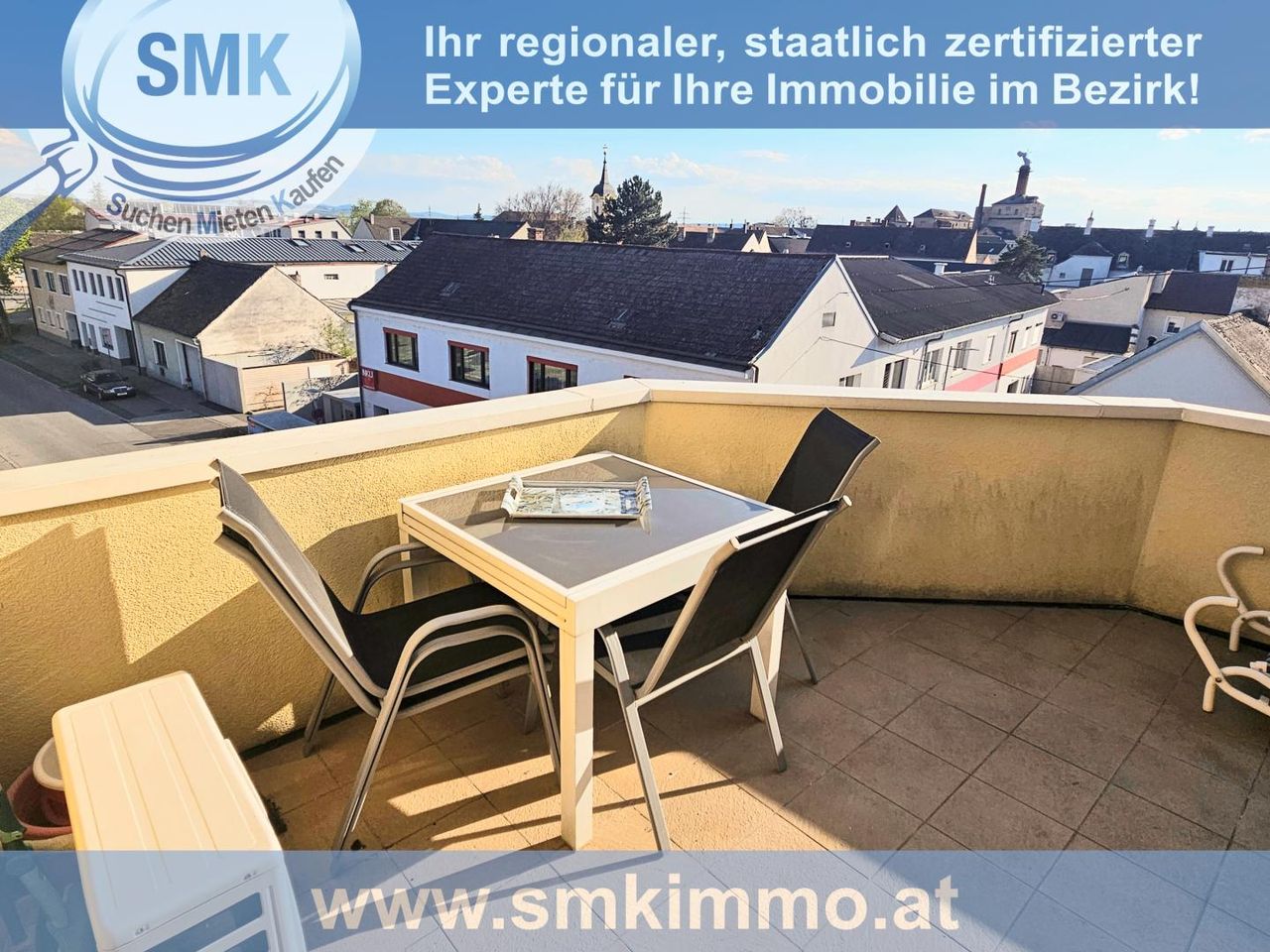 Mitten im Herzen von Laa, in unmittelbarer Stadtplatz- und Thermennähe, in herrlicher Ruhelage am Marktplatz, befindet sich diese exklusive, südseitig ausgerichtete und somit sehr helle Eigentumswohnung mit traumhaftem Rundum-Panoramablick über die Dächer von Laa mit Penthouse-Feeling, um die Sie jeder beneiden wird.