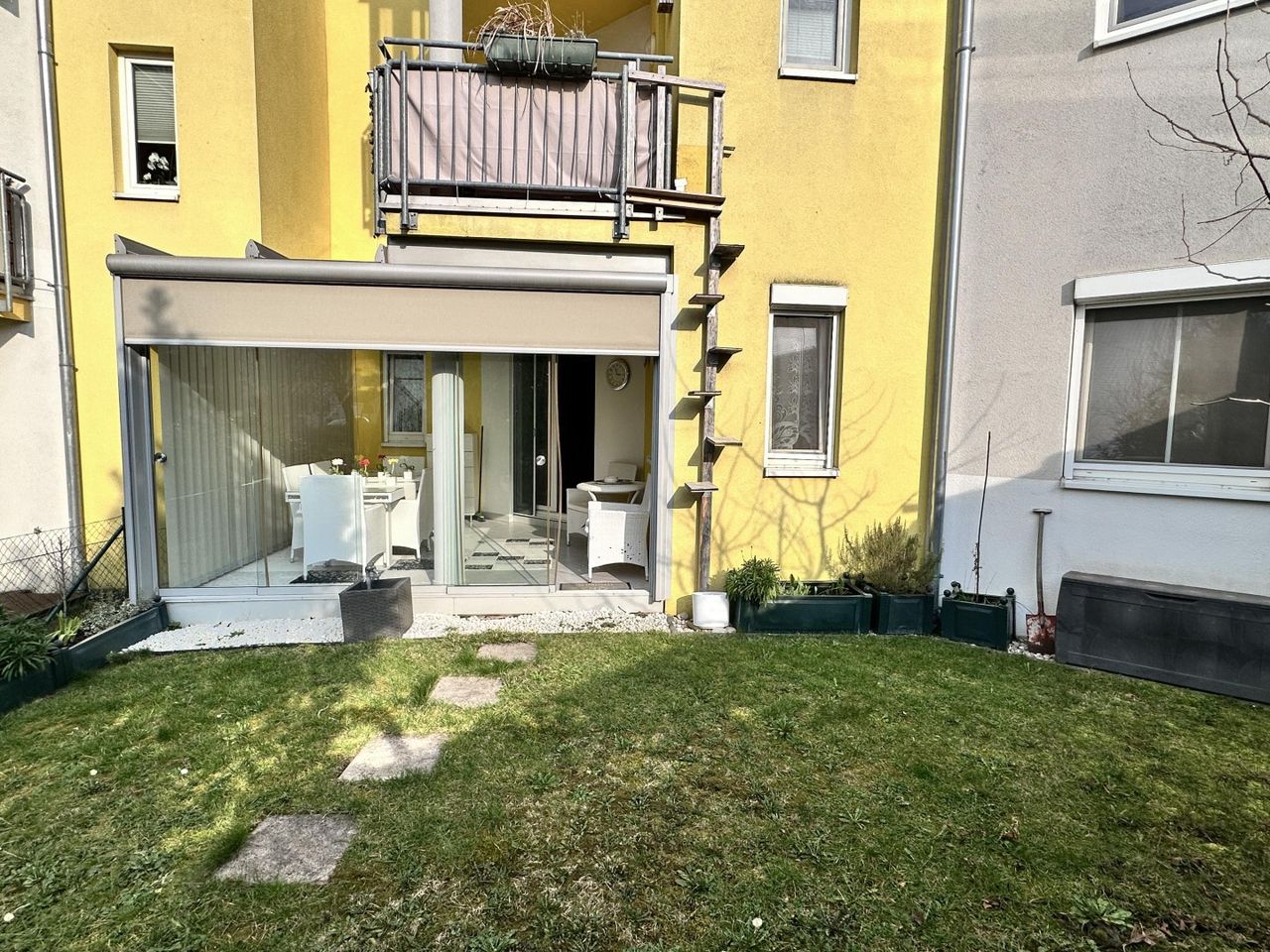 Die Terrasse und der eigenen Garten sind vom Wohnzimmer begehbar. Hier kann man wunderbar die Abendsonne genießen und entspannen. Neben dem Wohnzimmer befindet sich ein weiterer Raum sowie das Schlafzimmer mit eigenem Schrankraum. Das Badezimmer wurde 2023 renoviert und verfügt über ein südseitig ausgerichtetes Fenster. WC und Abstellraum sind zweckmäßig angeordnet.