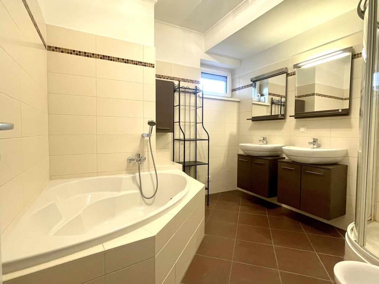 Zwei weitere Zimmer (ca. 10 m² und 12 m²), ein Badezimmer mit Fenster (Badewanne, Dusche, Doppelwaschbecken, Bidet) sowie ein Abstellraum runden das Raumangebot ab.