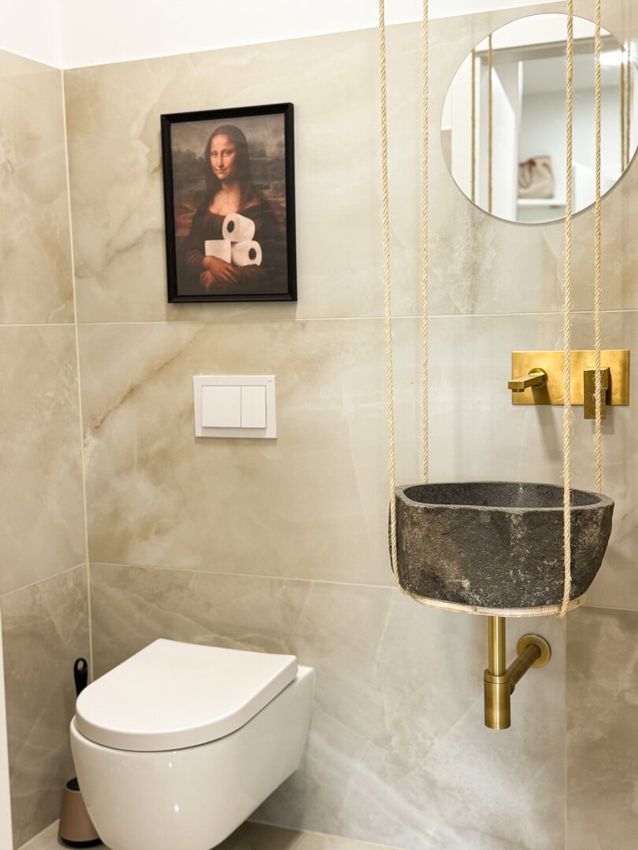 Großformatige 120 × 60 cm Onyx-Fliesen in Bad und WC