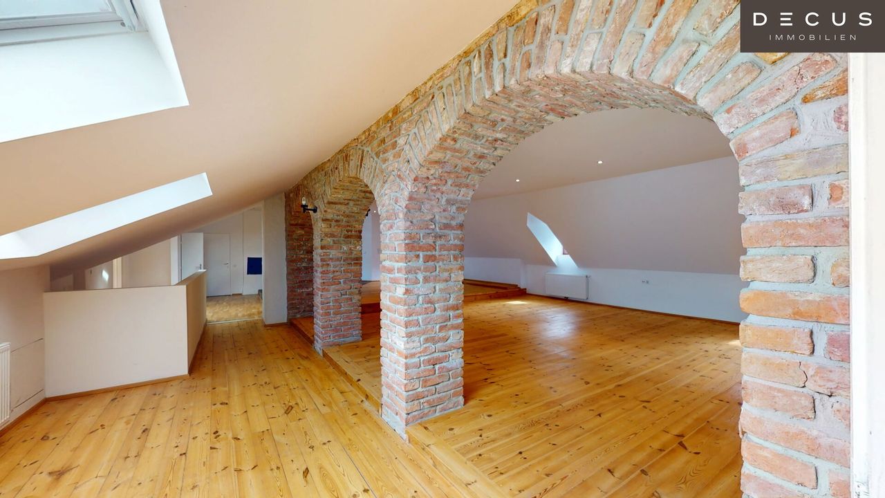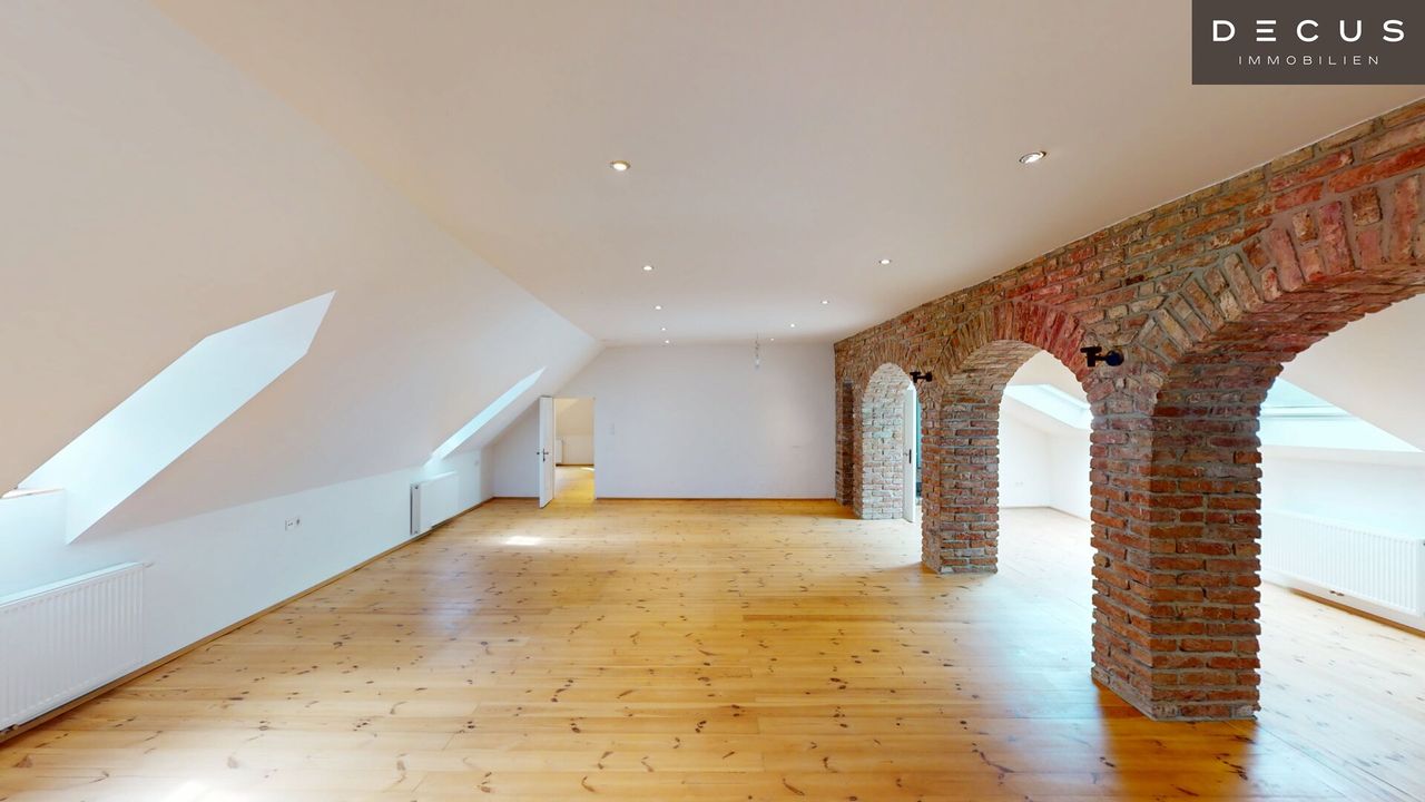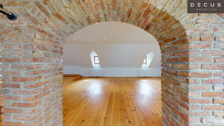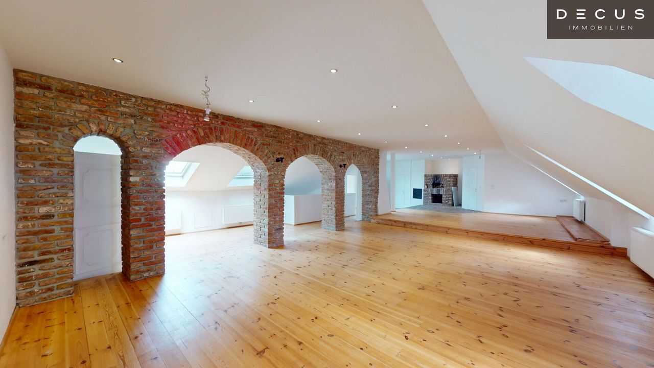 Das Haus selbst wurde kürzlich umfassend saniert und präsentiert sich in gepflegtem Zustand. In der Wohnung überzeugen historische Details wie geziegelte Rundbögen im weitläufigen Wohnzimmer, die für ein besonderes Ambiente sorgen. Innenhofseitig wurden neue Dachflächenfenster eingebaut, die für viel Licht und eine angenehme Wohnatmosphäre sorgen.