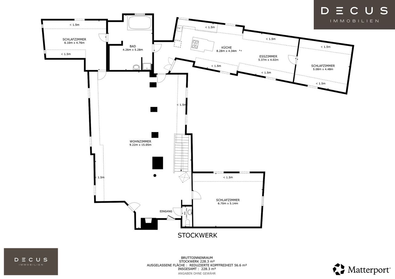 Die Dachgeschosswohnung bietet insgesamt 6 Zimmer inklusive Wohnküche, verteilt auf ca. 273 m²: