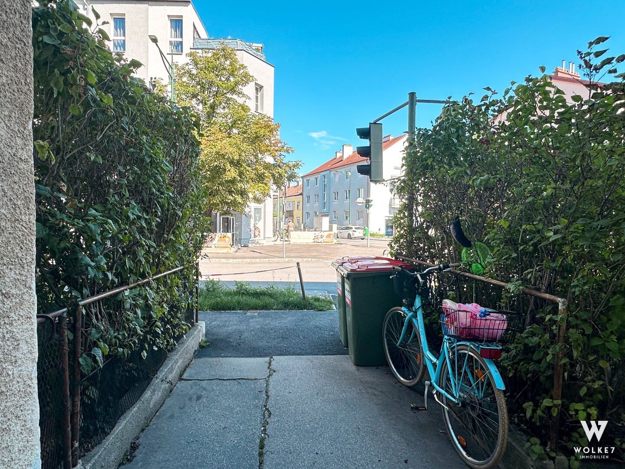 Die kleine, ruhige Hausgemeinschaft teilt sich einen begrünten Innenhof, der sich ideal zum Wäschetrocknen oder für Blumen eignet. Dort befindet sich auch der Fahrradabstellraum. Ein Kellerabteil ist im Kaufpreis enthalten.
