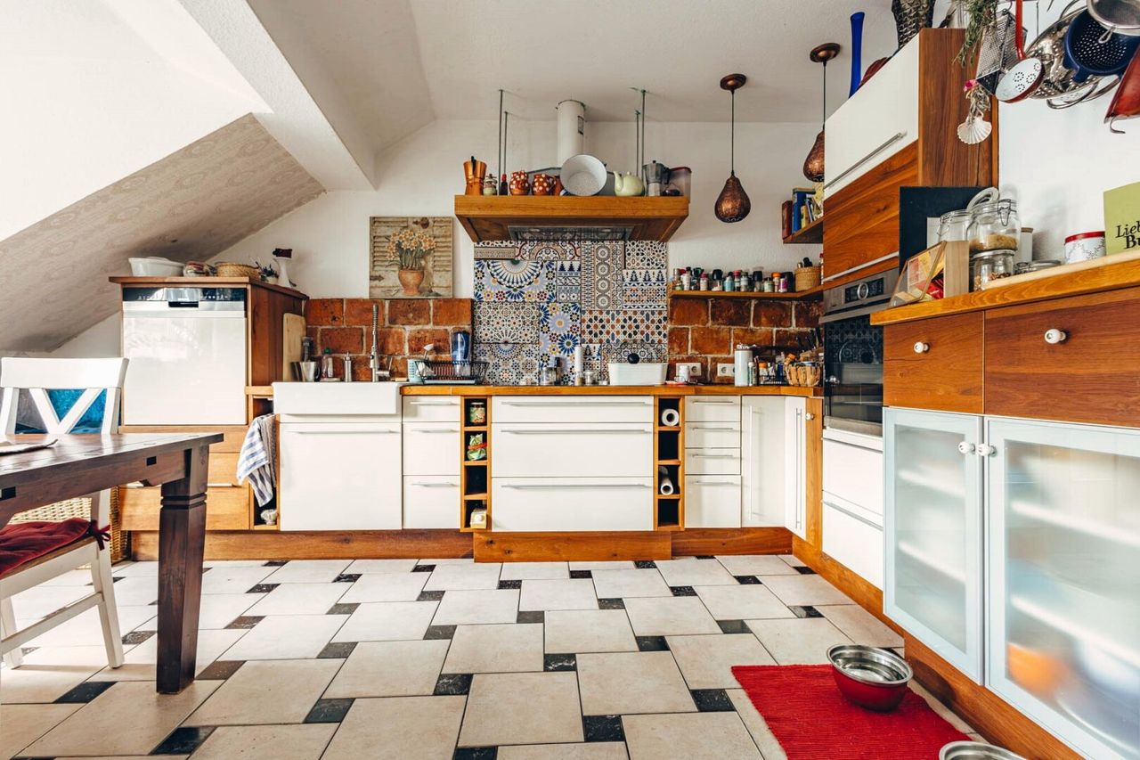 Die Ausstattung überzeugt mit Parkettböden in den Wohnräumen sowie Fliesen in Küche, Bad und WC. Für zusätzlichen Wohnkomfort sorgen eine Klimaanlage sowie Solarmodule, die zur nachhaltigen Energieversorgung beitragen. Die Kombination aus großzügigem Grundriss, Dachgeschosslage und charaktervollen architektonischen Details verleiht dieser Wohnung ein besonderes Wohngefühl.