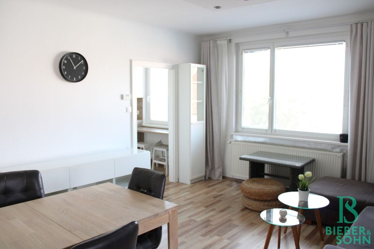 Beim alten Rathaus in Wiener Neudorf, befindet sich in einem 1958 erbauten und 2010 renovierten Wohnhaus, im ersten Stock ohne Lift, diese wunderbare und möblierte, ca. 60 m² große 2 Zimmer Wohnung mit Loggia. Von einer hochwertigen DAN-Küche samt Markengeräte, Waschmaschine, Kästen, Sofa und Bett ist alles vorhanden.