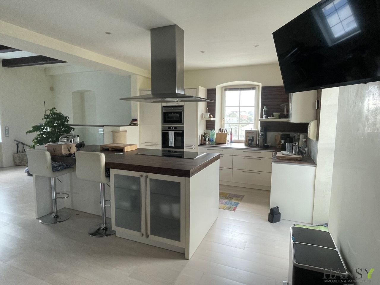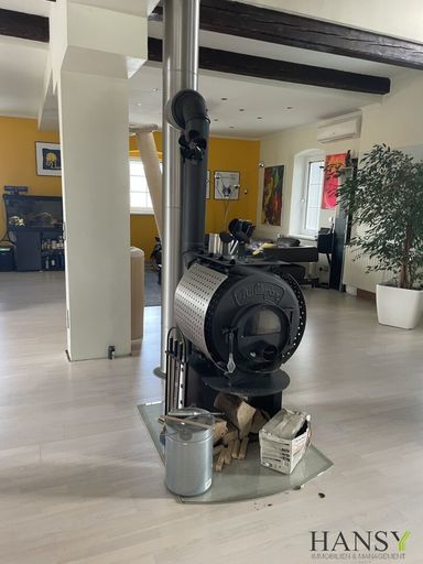 Aufgrund der Räumlichkeiten eignet sich dieses Loft nicht nur für Wohnzwecke, sondern auch perfekt als Büro/Atelier oder auch beides in Kombination. Im offenen Wohnbereich befindet sich auch ein Videobeamer mit elektrisch bedienbarer Leinwand.