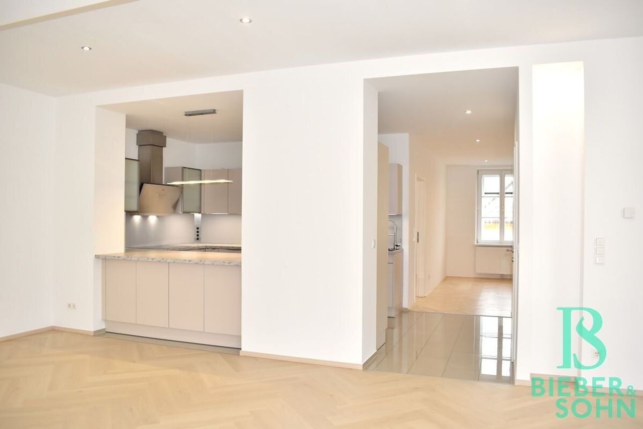 Eine qualitativ hochwertige EWE Einbauküche Mod. Nuova in der angesagten Farbe sand-matt, neuwertige Kücheneinbaugeräte von BOSCH (Kühl- Gefrierkombination, Induktionsherd, Backrohr, Mikrowellenherd, Dunstabzug, höher gestellter Geschirrspüler), exklusiv von der Tischlerei Rauchenzauner ausgestattetes Bad mit Wanne & Dusche & Doppelwaschbecken, sowie Waschmaschinen- und Trockneranschluss, neues und teilweise restauriertes Fischgrätparkett in den Wohn- und Schlafräumen, schönes Feinsteinzeug im Vorzimmer, sowie in den Sanitärräumen, eine Kombination von vorgesetzten Kastenfenstern und moderne doppelglasige Isolier-Kunststofffenster von KAPO, edle französische Balkontüren im Wohnzimmer von ROTO, Insektengitter, Innenrollos, Gardinenschienen mit Flächenvorhänge, Türen aus Holz, Fußbodenheizung mit Wandthermostat, beziehungsweise teilweise Heizkörper mit Thermostat, hydraulischer Aufzug, Kabel TV & Internet Anschlüsse im Wohn- und Schlafzimmer, Spot-Lichter in fast der gesamten Wohnung, Gegensprechanlage und ein Telefonanschluss komplettieren die exklusive Ausstattung dieser repräsentativen Wohnung. Die Montage einer Klimaanlage ist möglich.