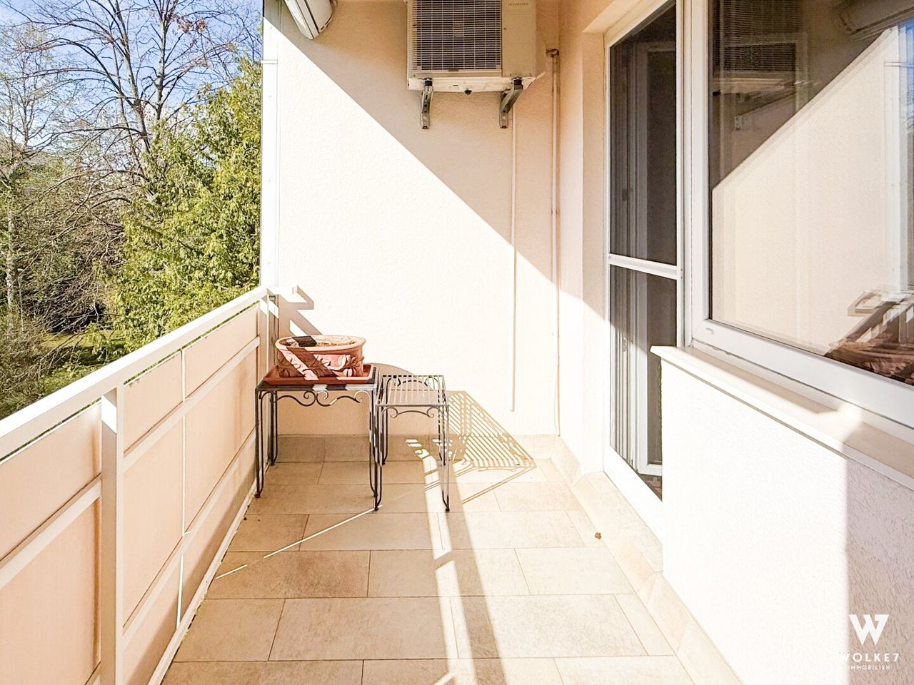 Die im Jahr 2004 generalsanierte Wohnung überzeugt mit einer gelungenen Kombination aus elegantem Mahagoni-Parkett, hochwertigen Feinsteinzeugfliesen sowie einer angenehmen Wohnatmosphäre. Die Loggia bietet zusätzlichen Freiraum zum Entspannen, während die Klimaanlage auch an heißen Sommertagen für ein angenehmes Raumklima sorgt.