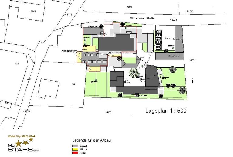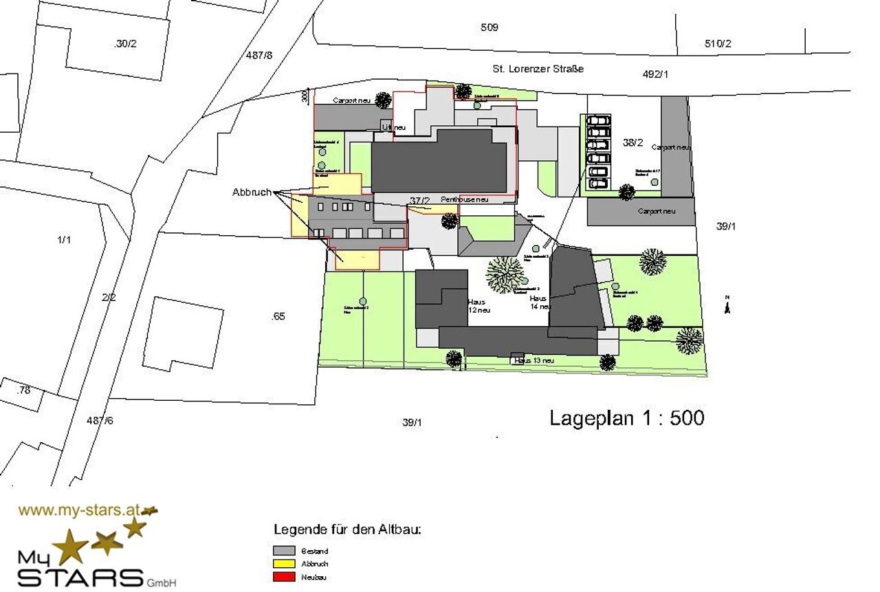 Vor der Immobilie und neben dem Aufzug befinden sich die Carport-Stellplätze (Aufpreis: € 19.500,-- obligat) sowie genügend Freistellplätze.