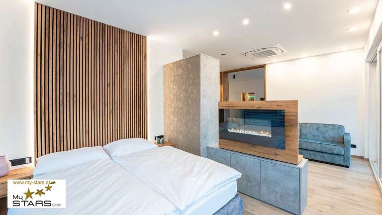 ist so clever eingerichtet, dass sie, wenn gewünscht, durch Schiebeelemente in zwei Suiten