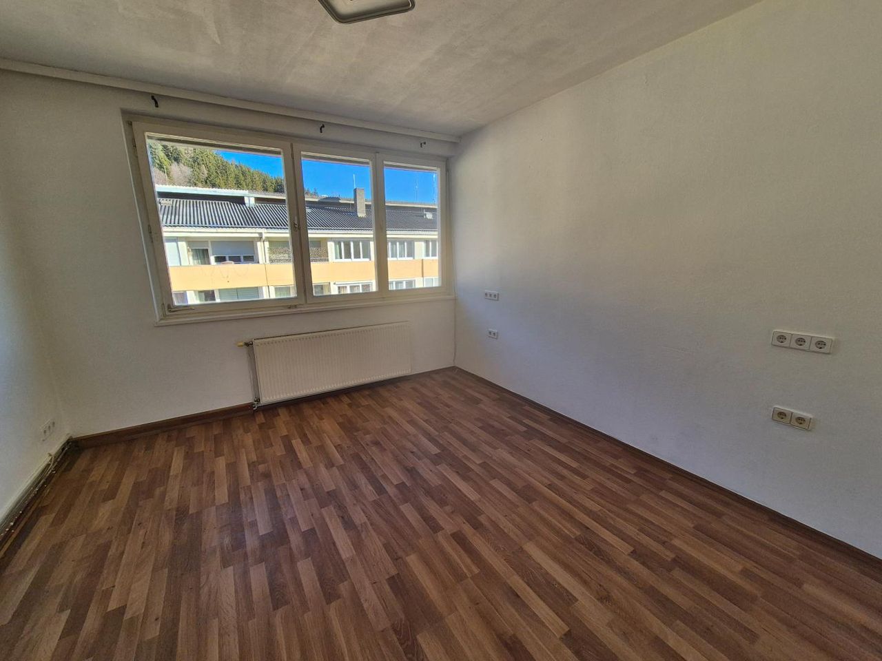 Die Räumlichkeiten befinden sich im 4. Stock (leider ohne Lift) einer Wohnhausanlage mit Blick auf die Grebenzen (Ski-Gebiet).