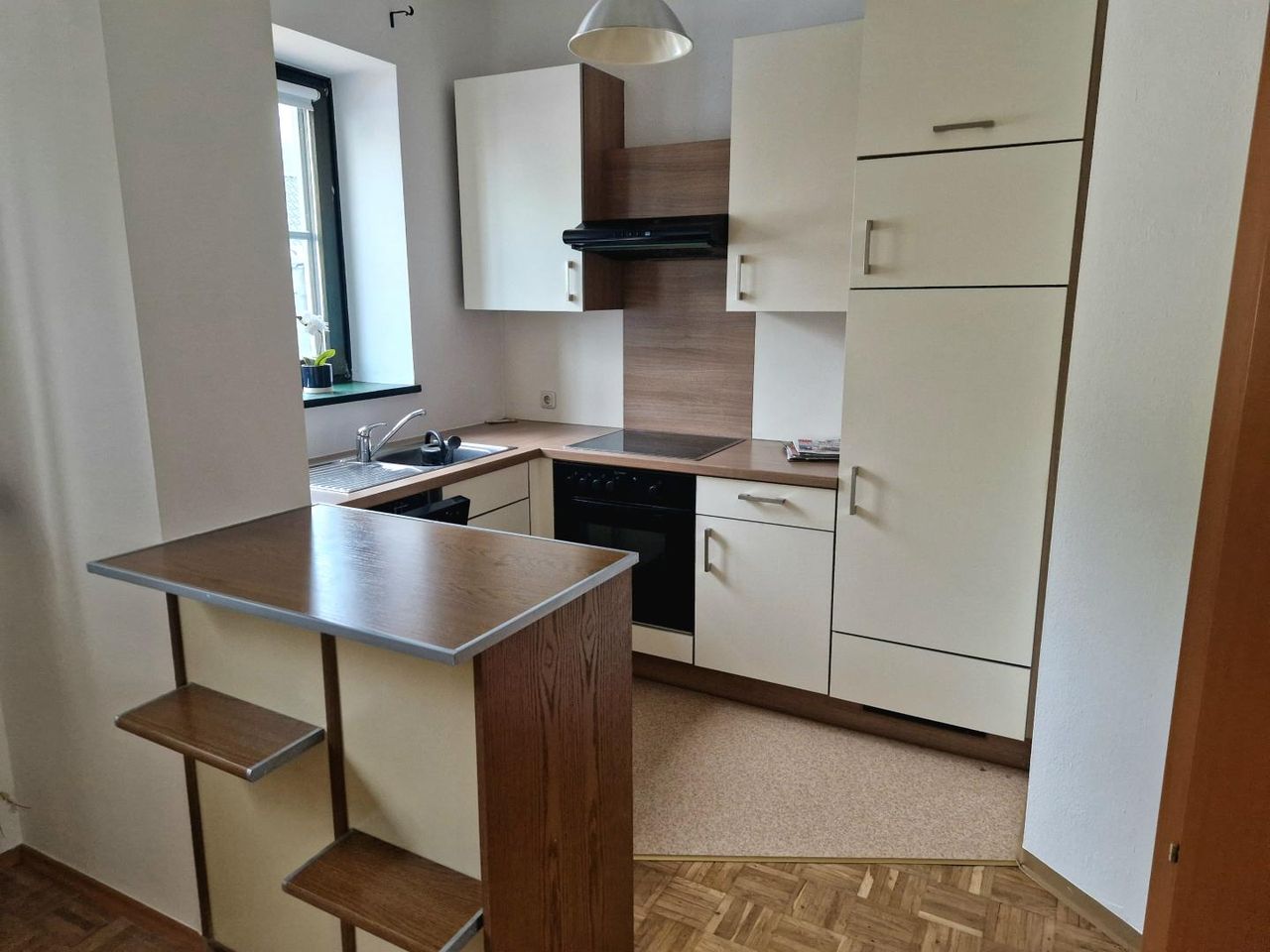 Die Wohnung umfasst ca. 52 m² und unterteilt sich in Vorraum, großes Wohnzimmer mit Küchenecke, Bad mit WC, Kleiderecke und ein kleines Schlafzimmer, Kellerabteil und Kfz-Abstellplatz.