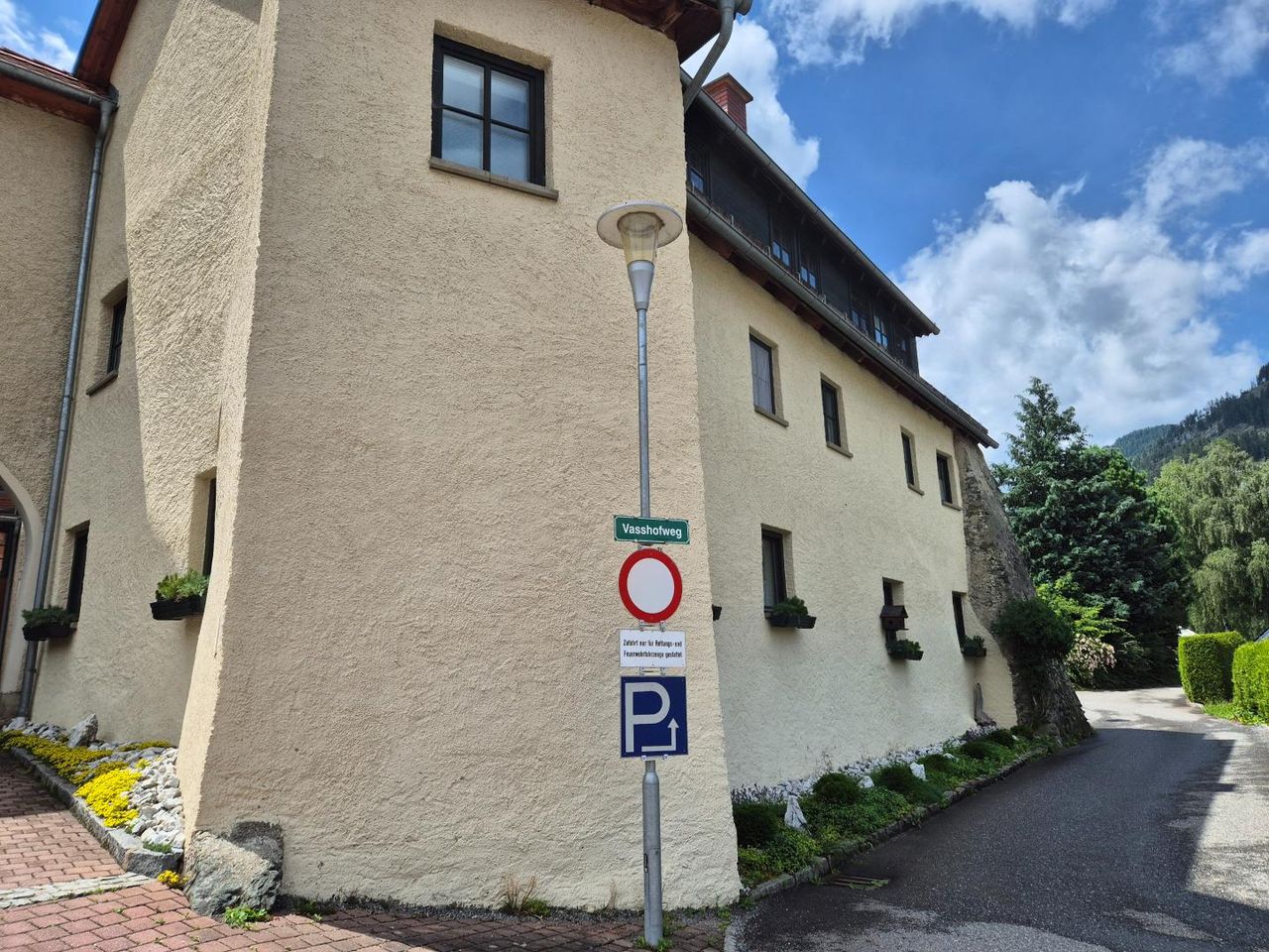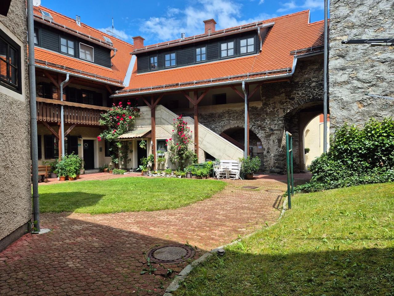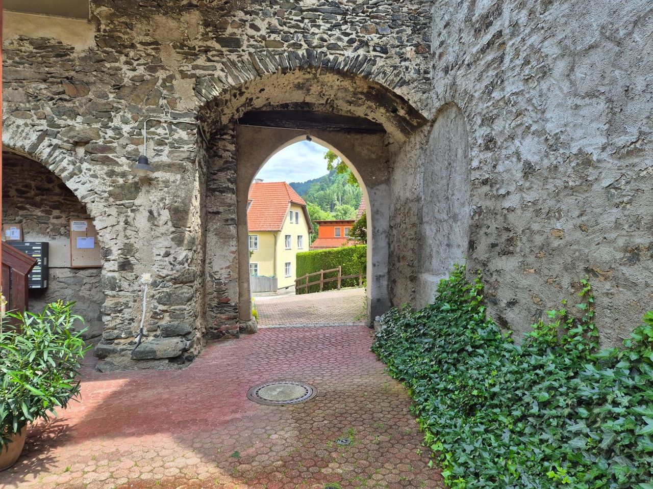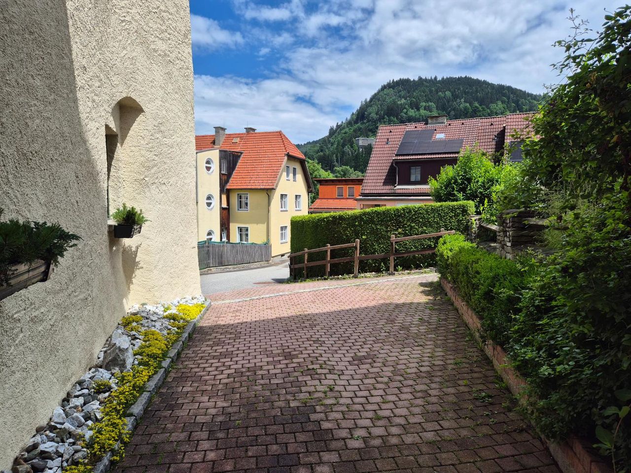 Die Wohnung befindet sich im Erdgeschoss einer geschichtsträchtigen, denkmalgeschützten Wohnungsanlage mitten in Teufenbach.