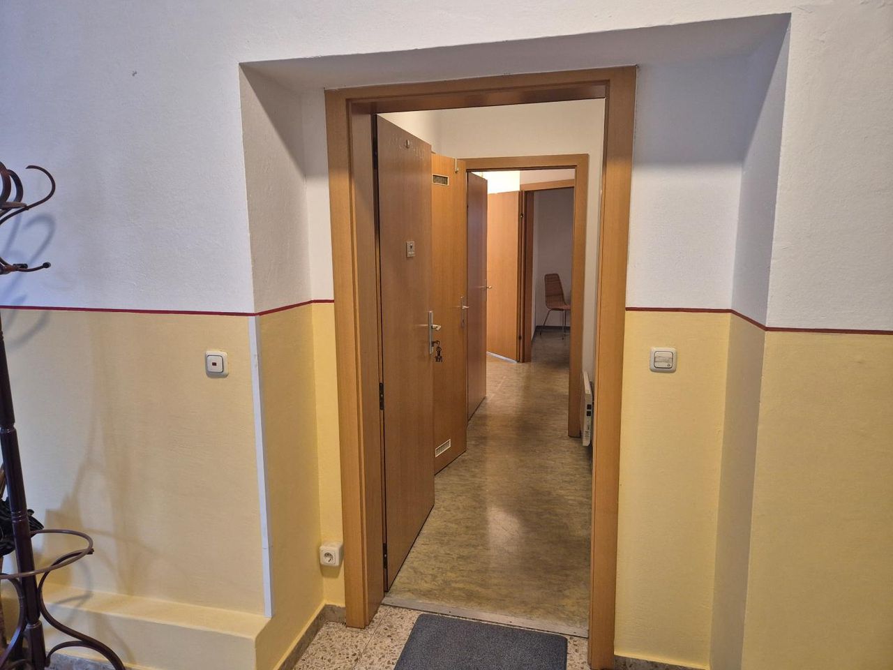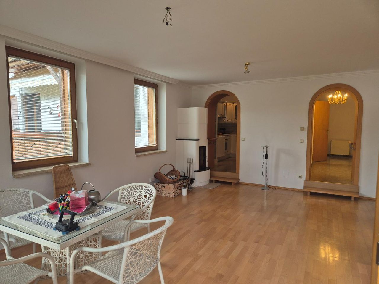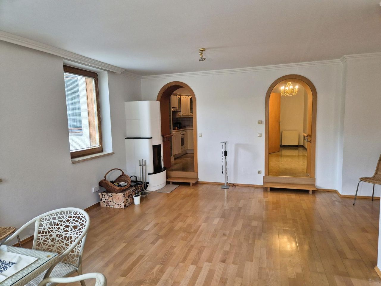 Das Mehrparteienhaus wurde 1994 von den Stadtwerken erschlossen und verbindet einen älteren Gebäudeteil mit einer neu errichteten Wohnung. Die Wohnung ist ebenerdig zugänglich und verfügt über eine Elektroheizung sowie einen schönen Kachelofen.