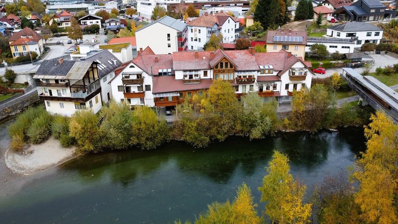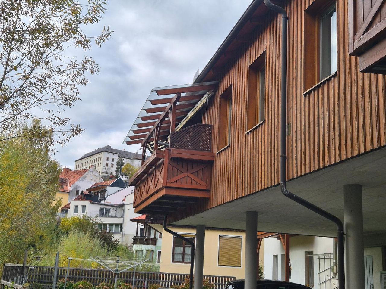 Diese zentral gelegene Erdgeschosswohnung in Murau überzeugt durch ihre außergewöhnliche Lage direkt an der Mur. Der Blick auf das Schloss Schwarzenberg und die ruhige Umgebung ohne Gegenüber schaffen eine entspannte Wohnatmosphäre ohne Straßenlärm. Genießen Sie auf dem sonnigen Balkon mit 5,8 m² Fläche Ihren Morgenkaffee und beobachten Sie dabei das Treiben von Enten und Fischen im Wasser.