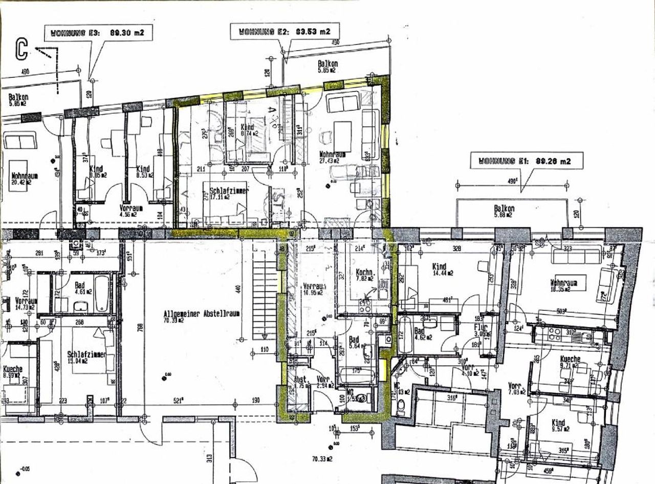 Zusätzlich steht ein zweiter Vorraum (Windfang, ca. 8 m², gemeinsam mit Nachbarn genutzt), ein allgemeiner Abstellraum für Fahrräder, Brennholz etc. (ca. 70 m²) sowie ein eigenes Kellerabteil (ca. 4 m²) zur Verfügung.