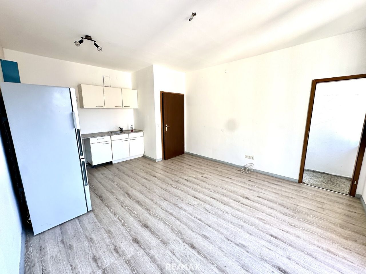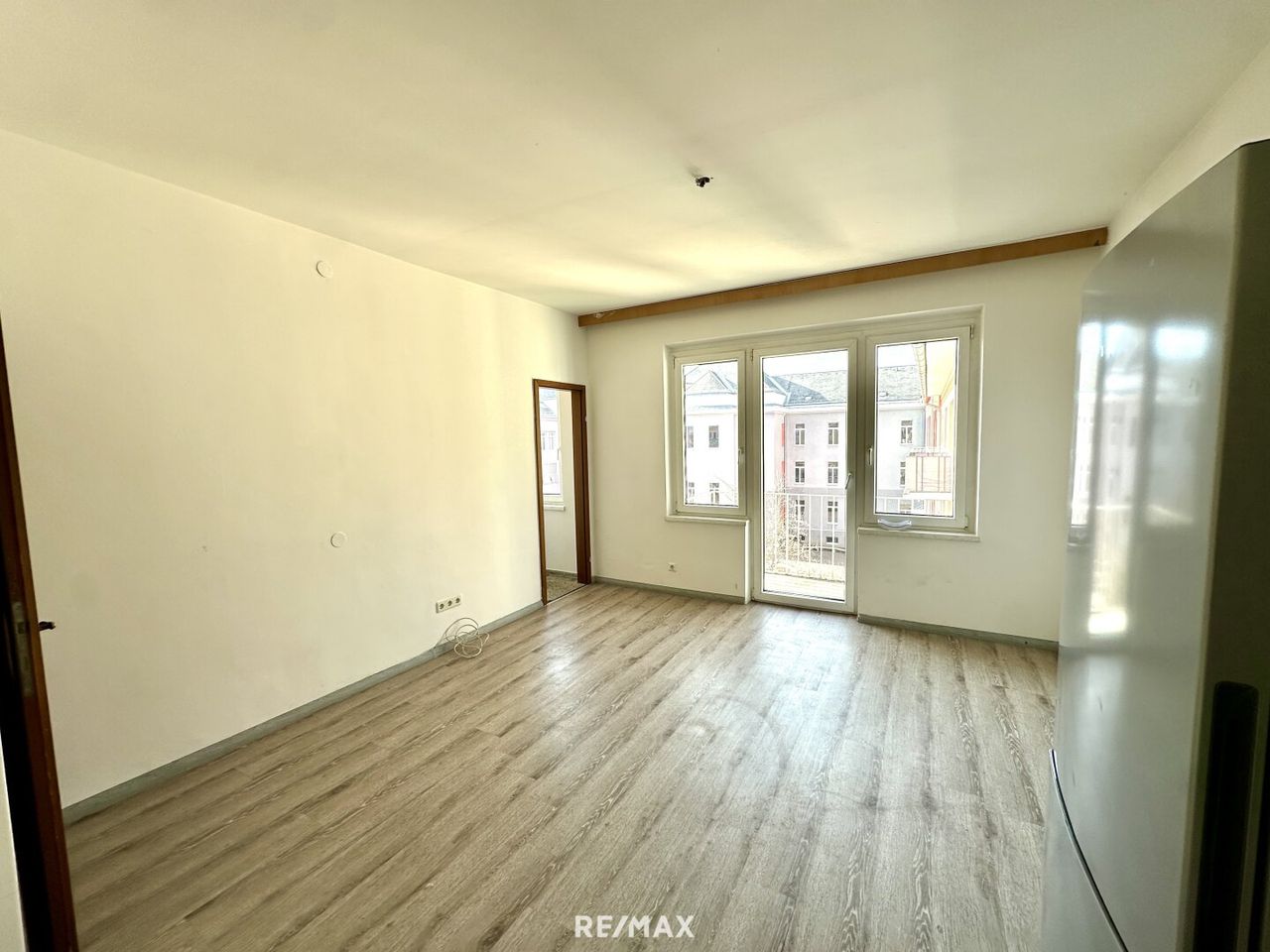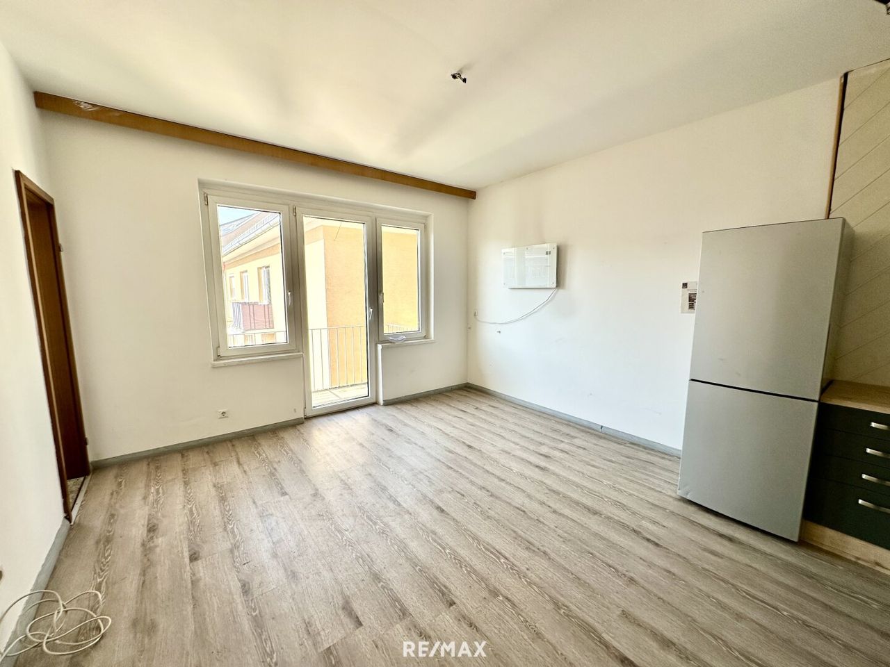 Die Wohn-Essküche bildet das Herzstück der Wohnung und bietet direkten Zugang zum kleinen aber feinen Balkon. Der zusätzliche Abstellraum sorgt für praktischen Stauraum.