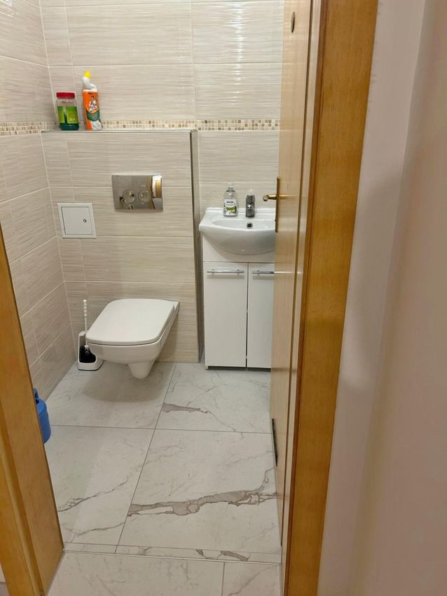 Die Wohnung im ersten Stock, besteht aus: Wohnzimmer mit Ausgang auf die Loggia 4,77 m² , Schlafzimmer mit Ausgang auf die Loggia und zwei Kinderzimmer,