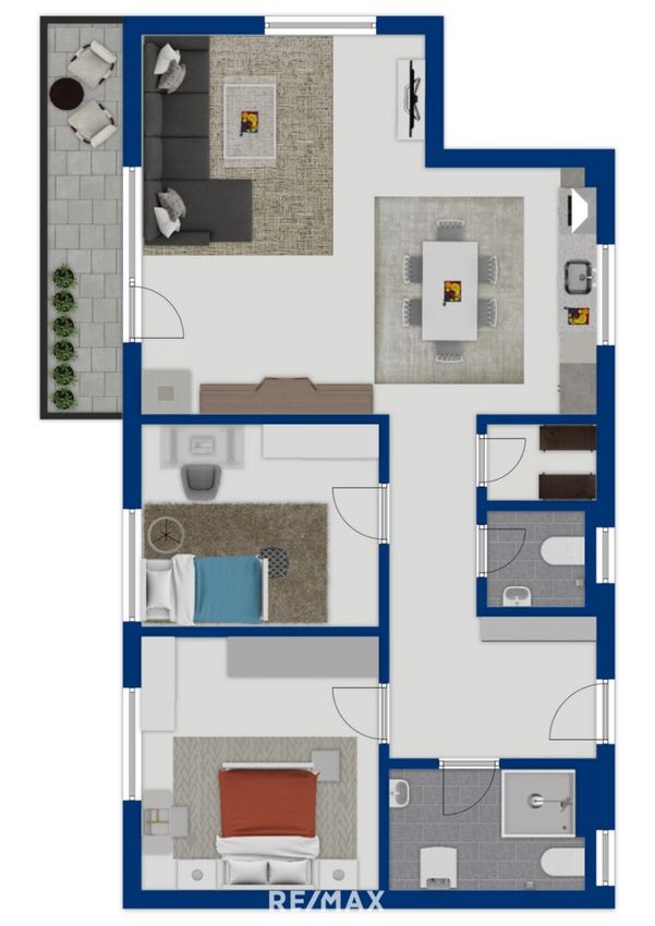 Die praktische Raumaufteilung umfasst neben dem großzügigen Wohnbereich zwei weitere Zimmer, die sich ideal als Schlafzimmer, Arbeits- oder Gästezimmer eignen. Das Badezimmer ist mit einer modernen Dusche ausgestattet, und für zusätzlichen Stauraum steht Ihnen ein praktischer Abstellraum zur Verfügung. Die separate Toilette rundet das durchdachte Raumkonzept ab.