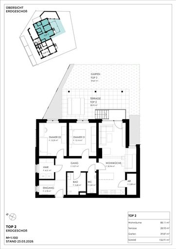 Diese attraktive Eigentumswohnung im Erdgeschoss bietet auf ca. 88 m² Wohnfläche ein großzügiges Raumkonzept und überzeugt durch ihre weitläufige Terrasse mit ca. 29 m² sowie einen privaten Garten mit rund 40 m² – ideal, um entspannte Stunden im Freien zu genießen.
