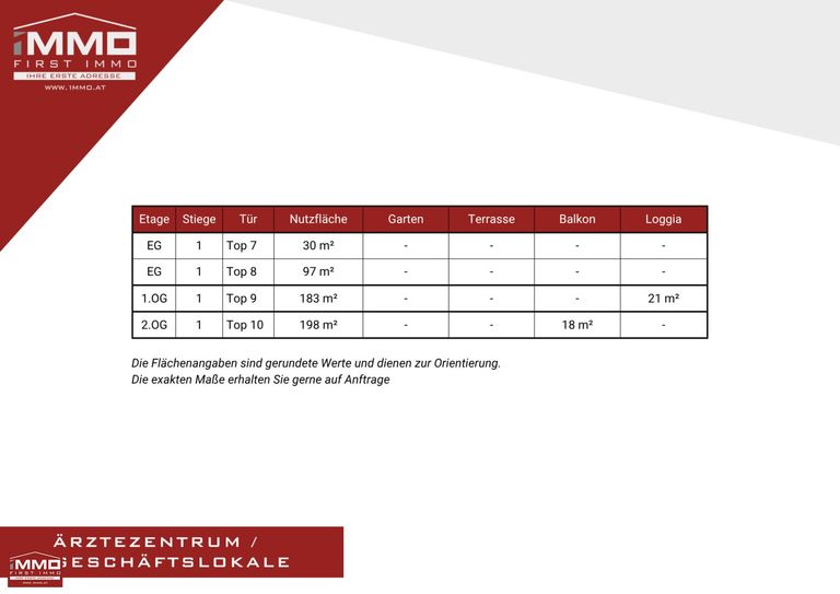 Verfügbare Einheiten Ärztezentrum / Geschäftslokale: