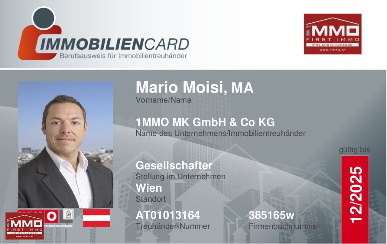Für genauere Informationen, weitere Fragen und Besichtigungen steht Ihnen Herr Mario Moisi, MA, MBA jederzeit gerne unter +43 676 844 752 200 oder unter office@1mmo.at zur Verfügung!