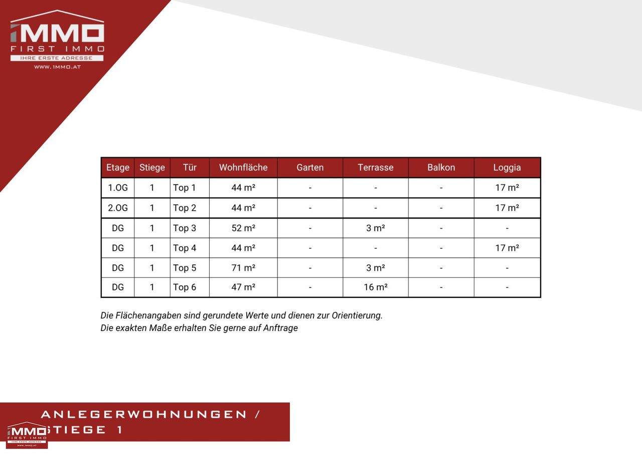 | 1. OG | 1 | Top 1 | 44 m² | - | - | - | 17 m² |