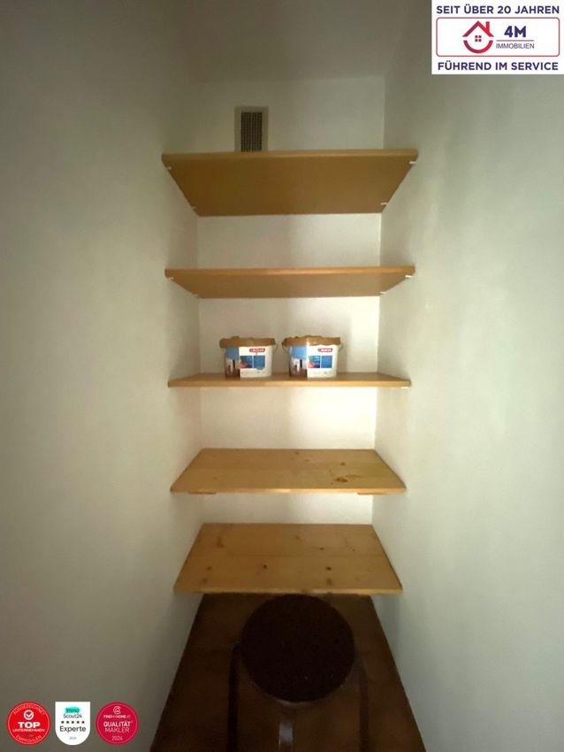 Im Vorzimmer befindet sich zudem ein praktischer Abstellraum, der wertvollen Stauraum bietet. Ein separates WC mit Handwaschbecken sorgt für zusätzlichen Komfort im Alltag.