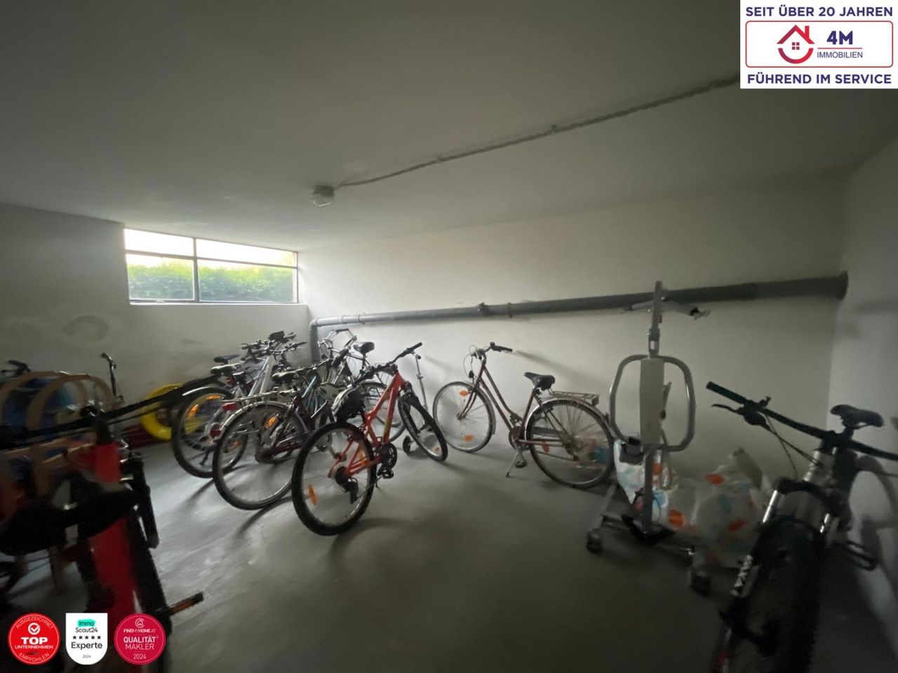 Ein Garagenplatz ist der Wohnung zugeordnet und bietet bequemes Parken. Darüber hinaus stehen den Bewohnern ein Fahrradraum, ein Waschraum sowie ein eigenes Kellerabteil zur Verfügung.