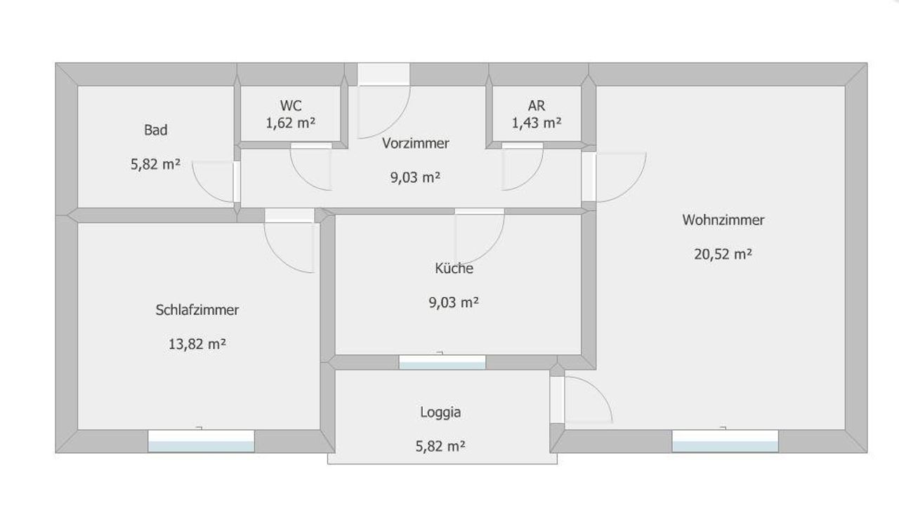 Wohnzimmer mit Loggia | Schlafzimmer | Küche | Bad | separates WC | Abstellraum