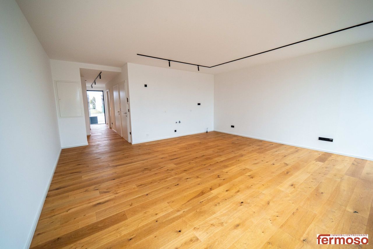 Der offen gestaltete Wohnbereich bildet das Herzstück der Wohnung und schafft gemeinsam mit der Küche ein modernes, lichtdurchflutetes Wohnambiente.