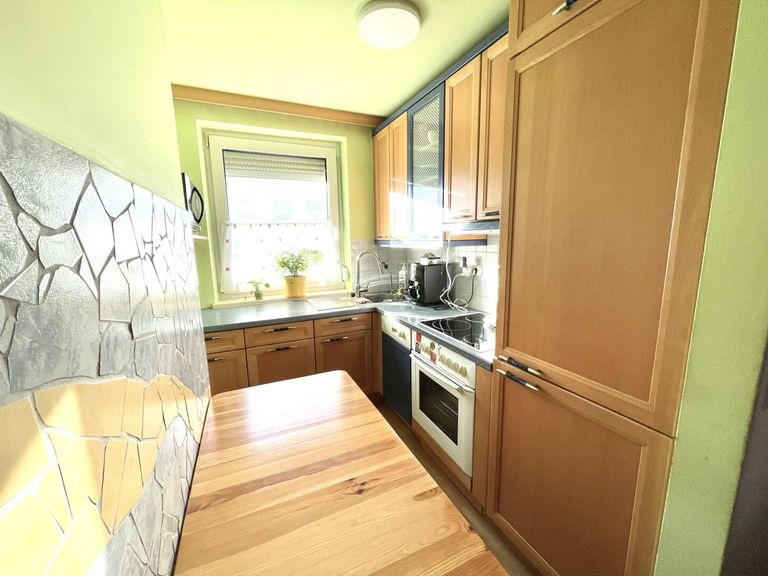 *Die Küche: Das Vorzimmer geht direkt in die Küche über. Mit Vogelgezwitscher und den Sonnenstrahlen lässt sich der Tag am Küchentisch bei einem gemütlichen Frühstück und einer Tasse Kaffee frohen Herzens beginnen. Die Dan-Küche aus Massivholz wurde vom Tischler eingebaut und überzeugt mit Qualität, zeitloser Eleganz und hat den vorhandenen Platz perfekt optioniert. Sie beinhaltet das Backrohr, den Herd der Marke Elektra Bregenz, den Dunstabzug, die Spüle und die Kühl-/Gefrierschrankkombination.